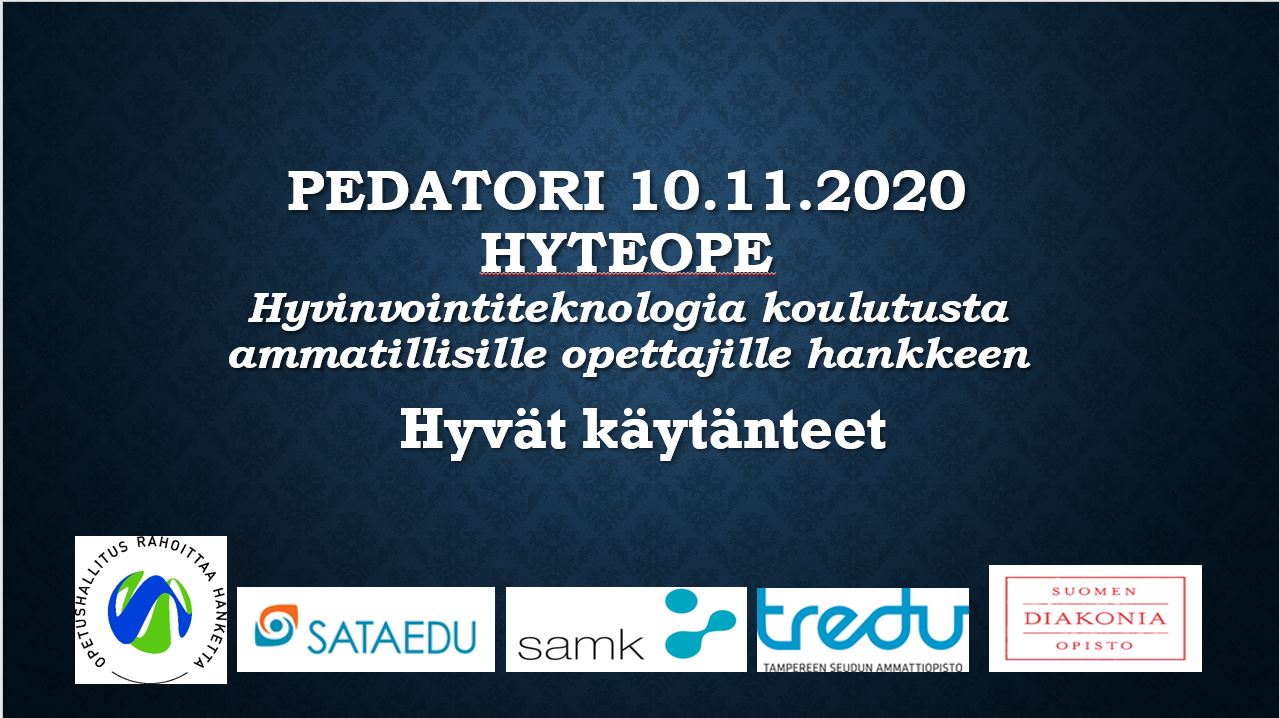 Opetushallituksen rahoittamassa HyteOpe-hankkeessa 13.2019 – 31.12.2020 kehitettiin ja tuotettiin Sataedun, Satakunnan ammattikorkeakoulun, Tredun ja Suomen Diakoniaopiston yhteistyönä sote- ja tekniikan alan ammatillisille opettajille koulutuspilotti. Koulutuspilotilla vahvistettiin opettajien hyvinvointiteknologian osaamista uusien tutkinnonosien opettamiseen ja yhteisopettajuuden hyödyntämiseen.