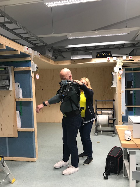18.5.2021 During the event at Sataedu’s Ulvila premises there was a noticeable enthusiasm among different professionals when Minna Laine from Meditas Oy, members of Satakunta DigiHealth project as well as teachers and students from different sectors had an opportunity to test novel welfare technologies. The tested technologies were Skelex 360-XFR exoskeleton and Auxivo LiftSuit® from Meditas Oy. Both exoskeletons were tested in social and healthcare sector, automation sector and electrical sector. In addition, two case simulations were carried out at the MeWet smart home, in which students tested exoskeletons in real work assignments, electrical installations, and home care client visits. The events were recorded using Nordic Simulators’ Rec-mobile system, which reinforces simulation pedagogical activities.