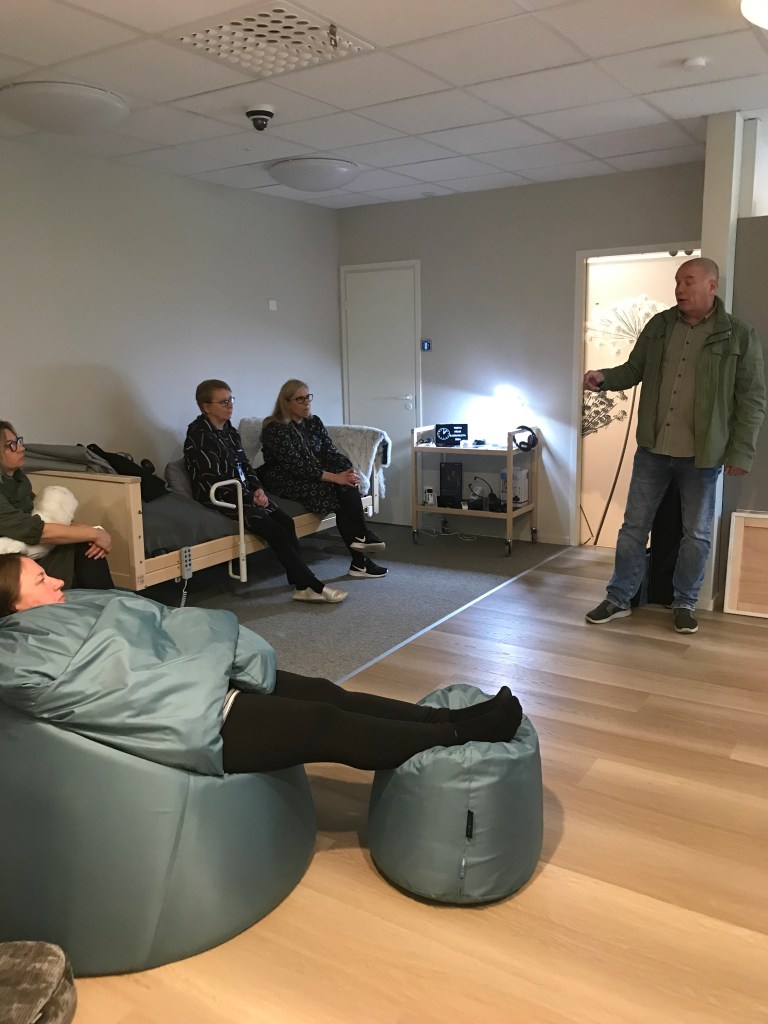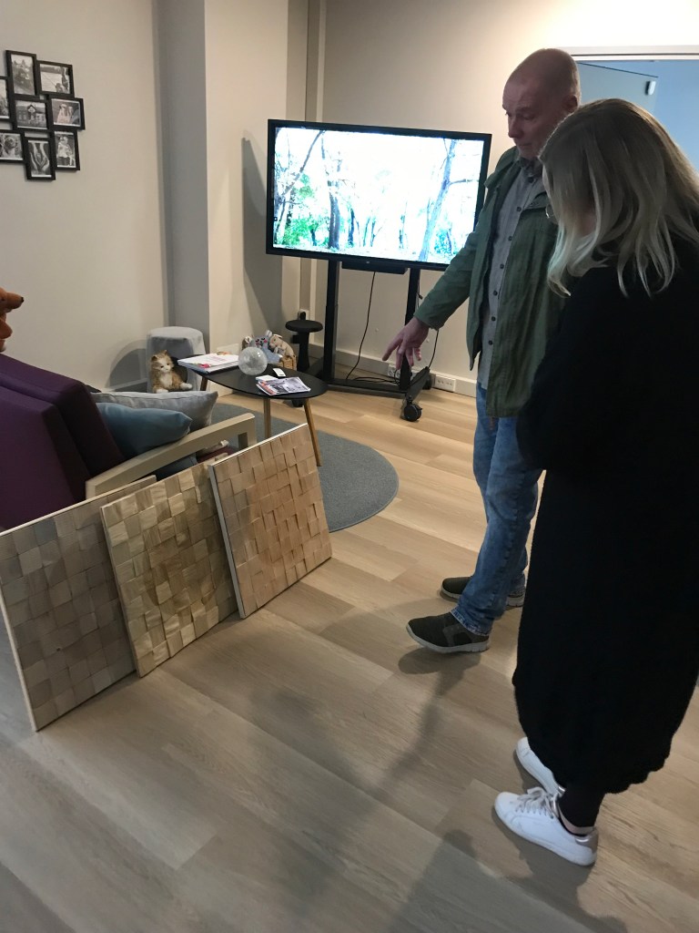 Vierailulle saimme myös Woodroomin, Kimmo Ojasen. Woodroom on uusi yhteistyöyritys, joka tuo MeWet-kotiin ainutlaatuisia ja vastuullisia sisustusratkaisuja. Sisustussuunnittelija Paula Hellbergin ja Kimmon ideoinnin tuotoksena saamme oppimisympäristömme aistitaulujen kokoelman. Aistitaulut ovat uniikkeja, Kimmon käsityönä suomalaisesta puusta valmistamia. Taulujen esteettisyyden lisäksi ne toimivat akustisina ja aistillisina elementteinä. Woodroomin käsityönä valmistamat taulut sopivat Junetin huonekalujen kanssa, vahvistaen vastuullista oppimisympäristöämme. Vastuulliset valinnat, esteettiset ja käytännölliset sisustusratkaisut tukevat kaikkien MeWet-kodissa kävijöiden hyvinvointia.