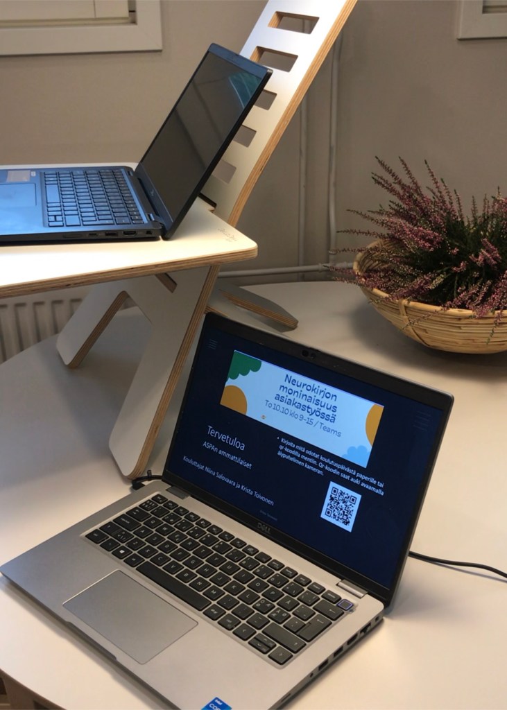 Tänään MeWet-koti toimi ASPAn ammattilaisten Neurokirjon moninaisuus asiakastyössä etätyöpaja koulutuspaikkana. Yhteisessä päivässä opettaja Niina Salovaara johdatti neuromoninaisuuden kautta aistipoikkeamiin ja niiden vaikutuksiin asiakastyössä. Mukana päivässä oli kolmekymmentä ammattilaista etänä ympäri Suomea. Allekirjoittanut itse sai tarttua aiheeseen digitaalisten arviointityökalujen ja hyvinvointiteknologian mahdollisuuksien kertomisen myötä. Webbikamerat vaihtuivat lennossa , kun päästiin kertomaan ja näyttämään erilaisia hyvinvointiteknologian mahdollisuuksia. Etätyöpaja koulutuksen toteutimme jo toisen kerran, mutta nyt MeWet-kodin aistiesteetön toimintaympäristö tuki hienosti päivän tavoitteita. Koti tuli testattua myös aktivoivana ja osallistavana etätyöpaja koulutusympäristönä!