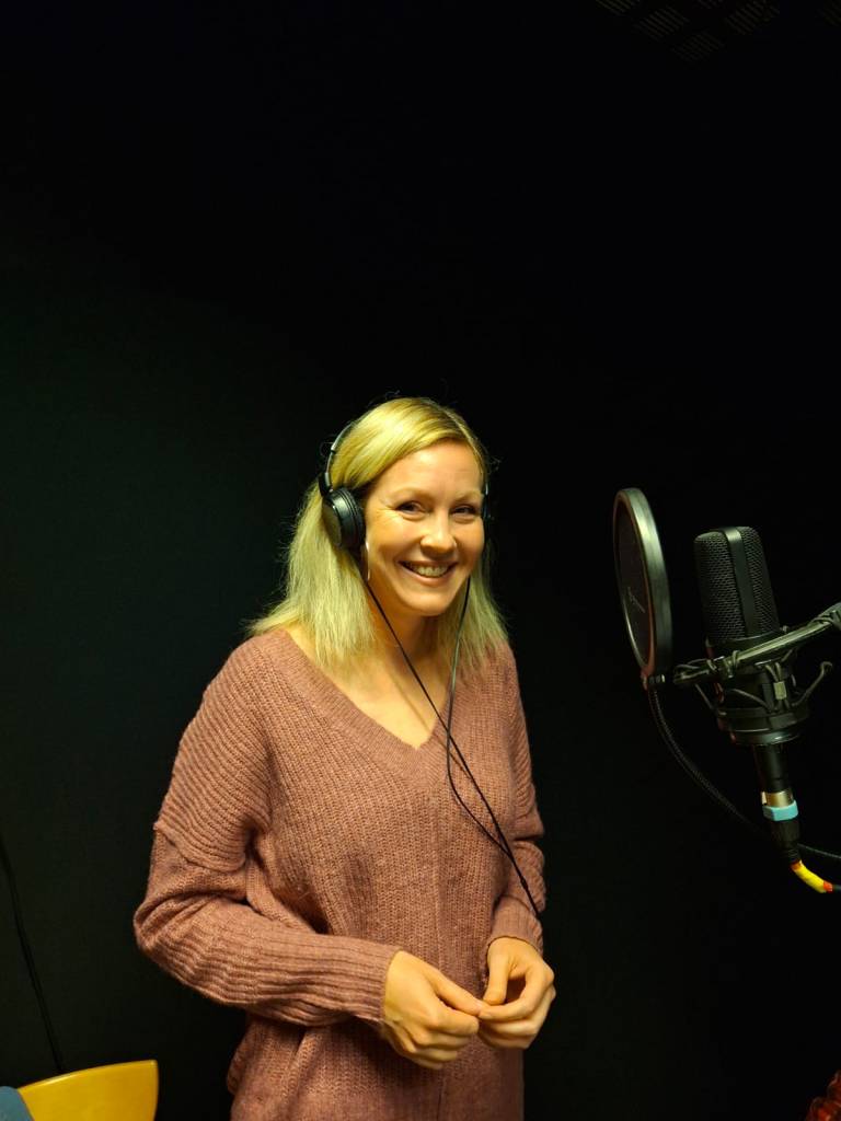 Hyvinvointiteknologian opiskelu voi näyttää myös tältä ! Kuvassa Tiina Heinola nauhoittamassa Sataedu Nakkilan studiolla Nalle hammaslääkärissä tarinaa.